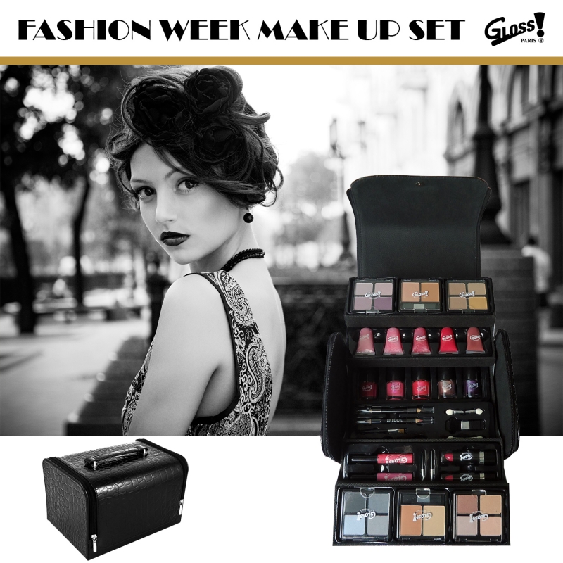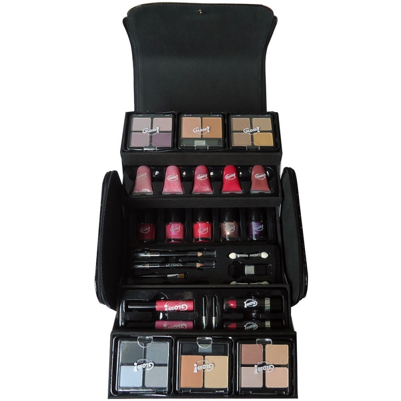 Cette Mallette de Maquillage Gloss! vous propose un assortiment de cosmétiques et applicateurs.