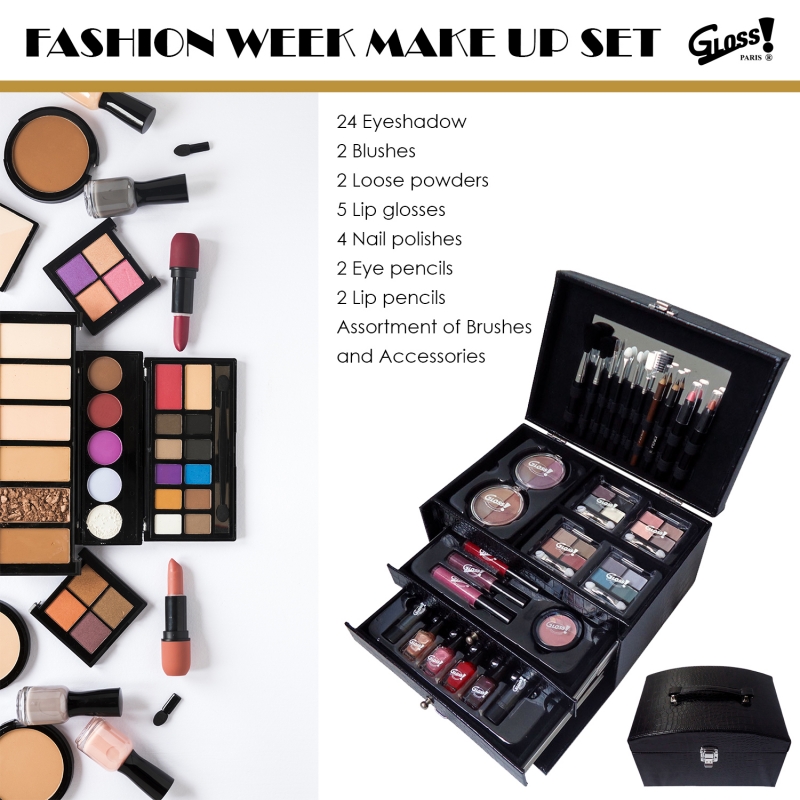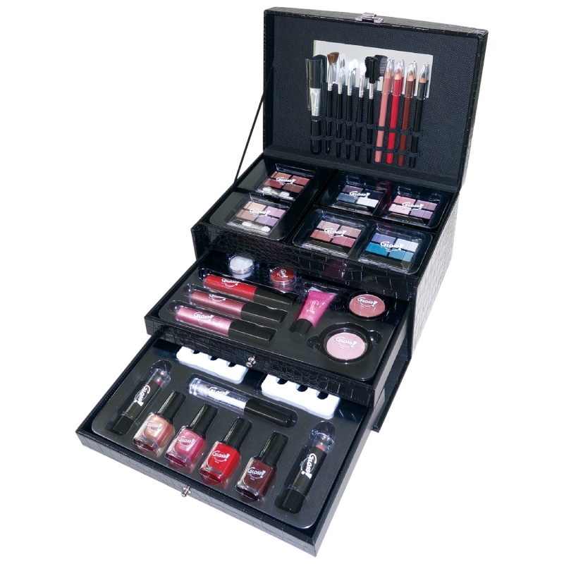 Cette Mallette de Maquillage Gloss! vous propose un assortiment de cosmétiques et applicateurs. Ce format est idéal pour ranger et visualiser rapidement votre maquillage. Vous pouvez très bien offrir une autre utilité à cette mallette qui sera également parfaite pour ranger vos bijoux par exemple! Le cadeau idéal pour faire plaisir!!!