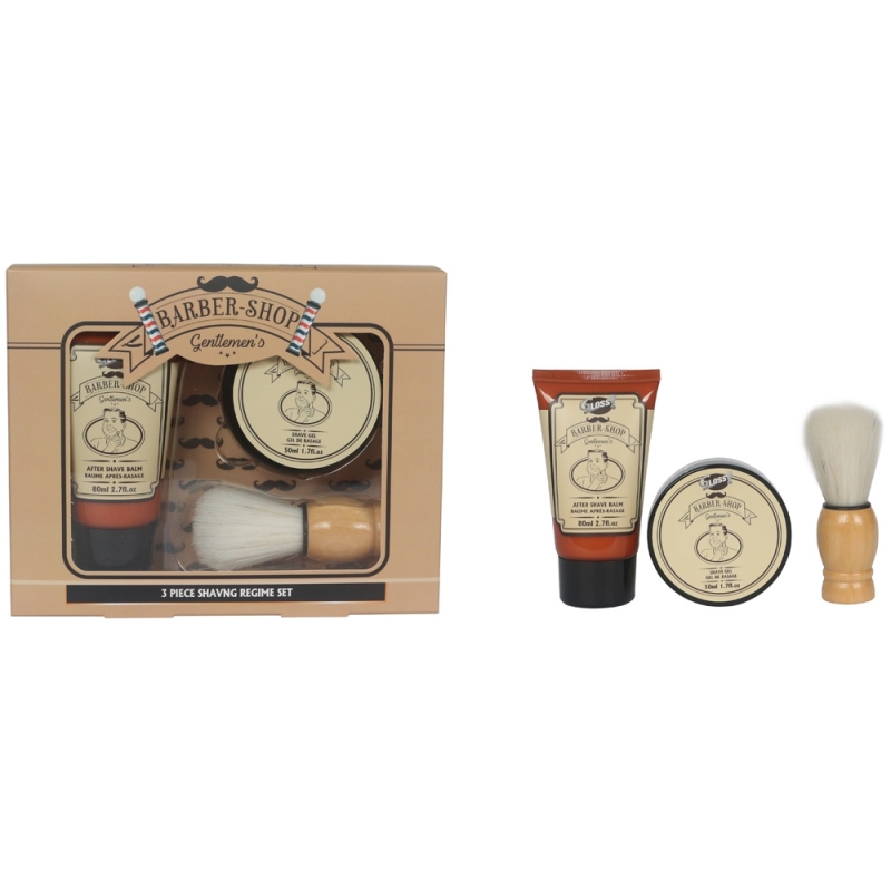 Contenu : 80ml baume après-rasage, 50ml gel de rasage, blaireau.