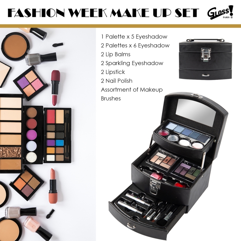 Cette Mallette de Maquillage Gloss! vous propose un assortiment de cosmétiques et applicateurs.