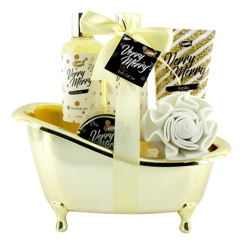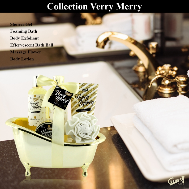Découvrez notre baignoire de bain de la collection Verry Merry à la vanille. La baignoire est équipée d'un gel douche, un bain moussant, un paquet de sels de bain et une éponge EVA de quoi parfumer sa peau en tout délicatesse. Les fans de vanille seront plus que ravies de recevoir ce cadeau. La baignoire est totalement réutilisable comme objet de décoration ou rangement.