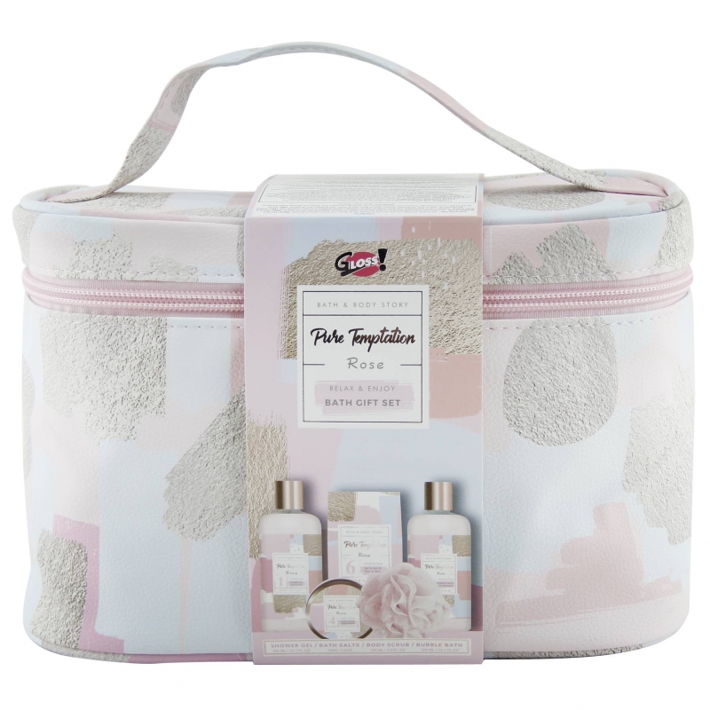 Faites découvrir notre magnifique vanity de bain composé de sublime produits pour le bain à la Rose. Avec son gel douche, son bain moussant, son exfoliant corporel, ses sels de bains et sa fleur de massage, il a de quoi séduire toute personne fan de la rose. Le plus de ce cadeau est que le vanity est réutilisable pour ranger vos produits d'hygiènes ou beautés que ce soit à la maison ou en voyage.