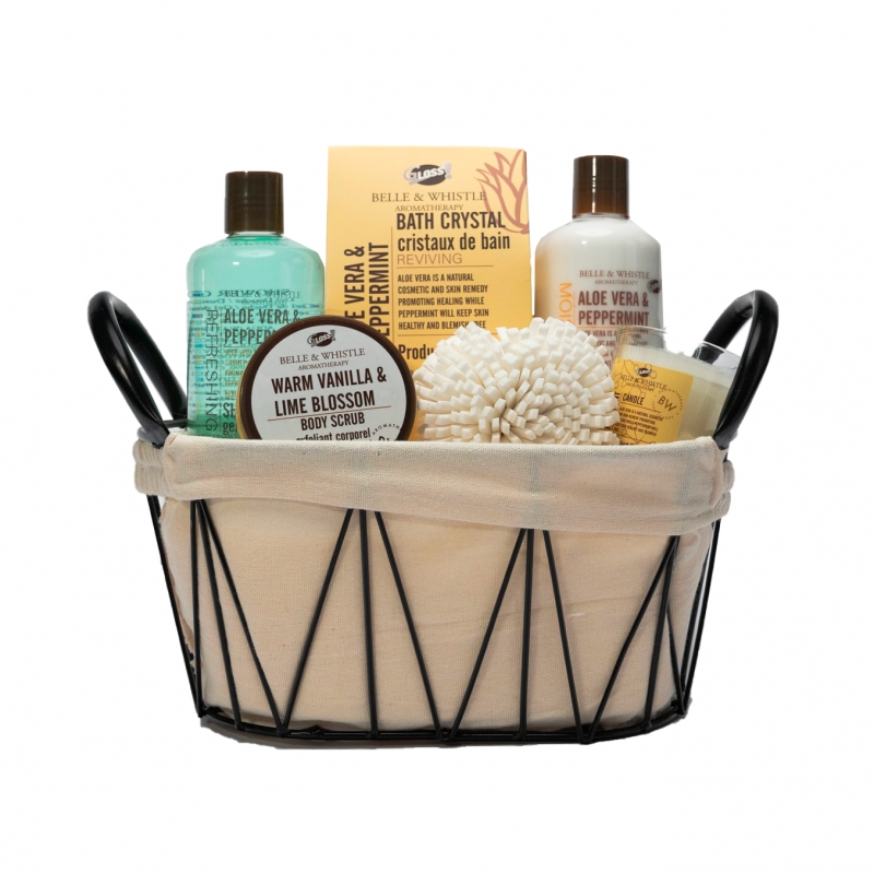 Découvrez notre corbeille de bain et détente de la collection Belle & Whistle.
